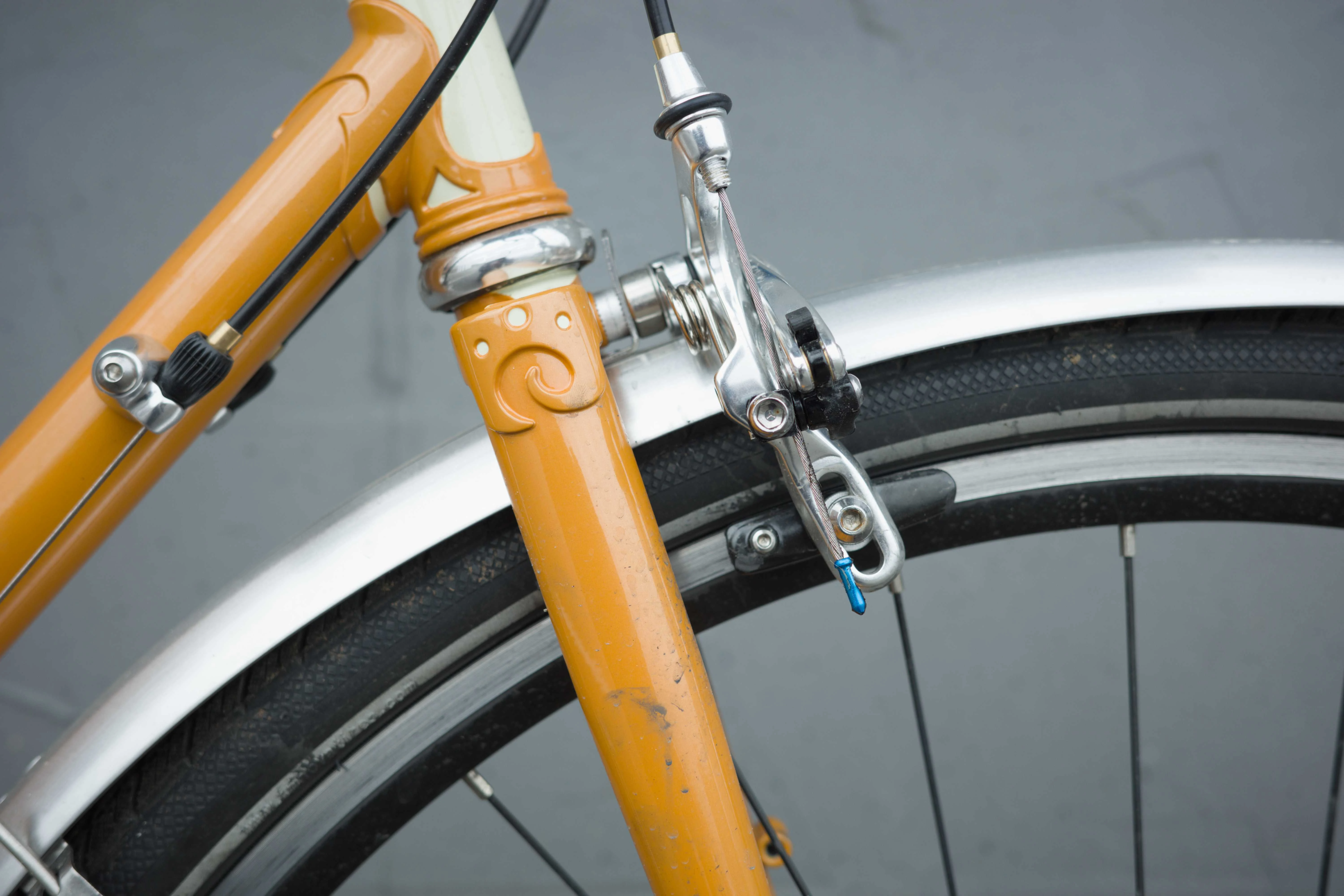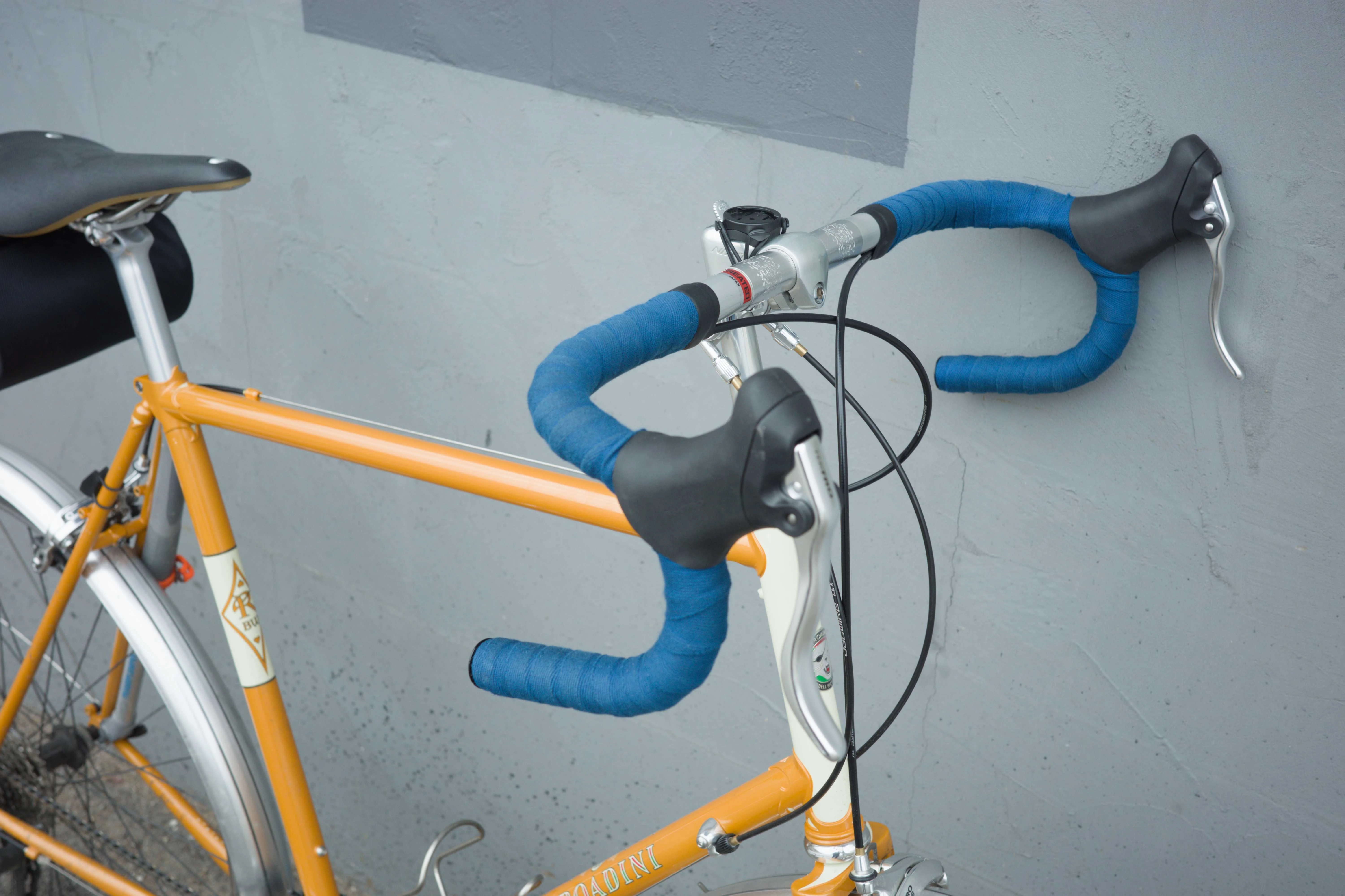I built up the 2025 Roadini frameset from Rivendell with 38mm tires and drop bars. I love the lugs and the way the golden yellow paint job looks with the dark blue bar tape. It’s super fun to ride. I grab this bike when I want to go for an exercise ride or if I’m going somewhere and I know I don’t need to carry more than my lock.